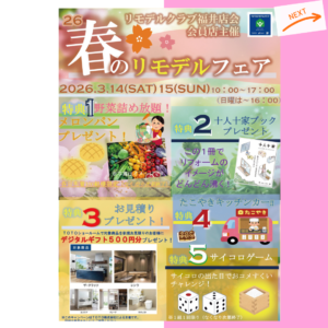 TOTOリモデルクラブ福井店会主催のイベントで、TOTO福井ショールームで開催します!