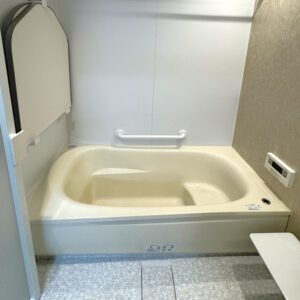鯖江市にお住いのお客様は、長年お使いだったお風呂の浴槽の剥がれや、ガムテープで補強した洗面化粧台の扉など老朽化が気になり、お風呂と脱衣所、洗面化粧台をまとめてリフォームを検討されました。